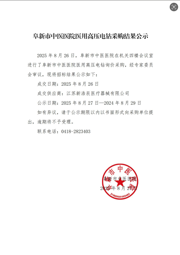 MK体育·(国际)官方网站医用高压电钻采购结果公示
